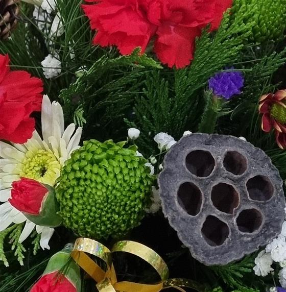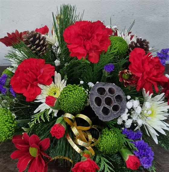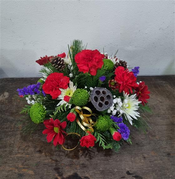 9" long lasting Christmas posy suitable for a Graveside tribute or gift.
