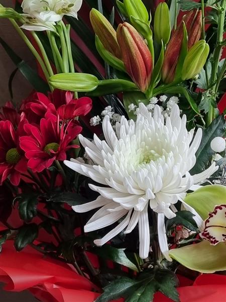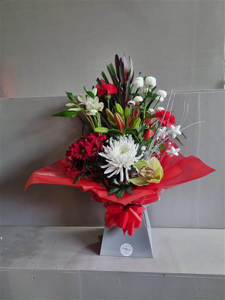 Please note that due to the seasonal availability of flowers it may be necessary to vary individual stems from those shown. Our skilled florists may substitute flowers for one similar in style, quality and value. Where our designs include a sundry item like a vase or basket it may not always be possible to include the exact item as displayed. If such an occasion arises we will make every effort to replace the item with a suitable alternative.