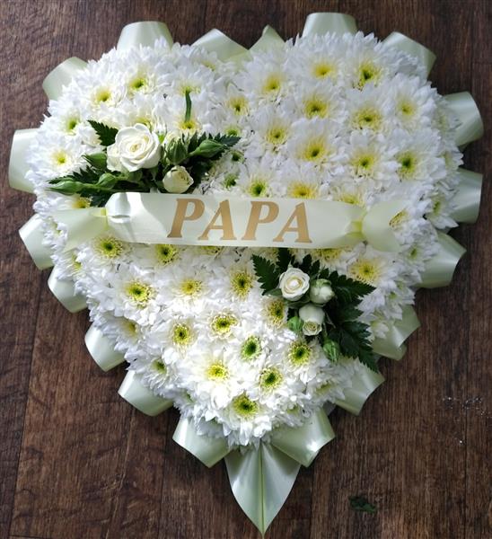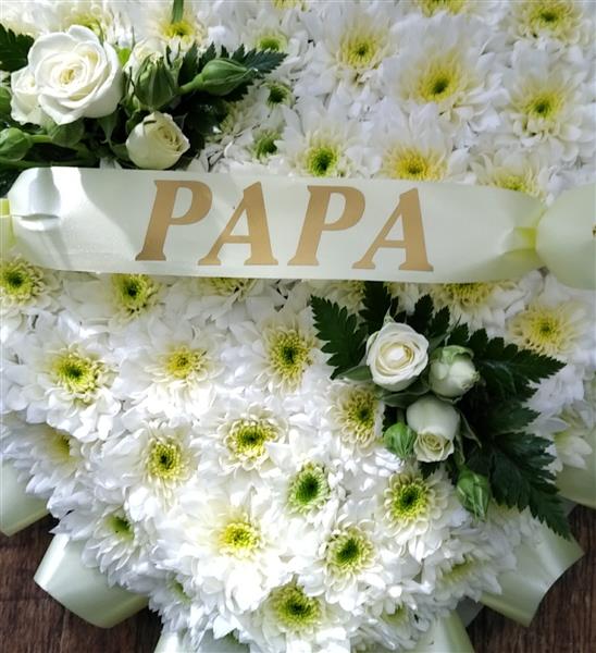 14" Massed heart with name ribbon sash, leave name and ribbon colour in the comments box
