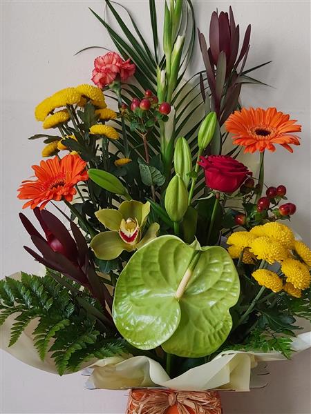 Please note that due to the seasonal availability of flowers it may be necessary to vary individual stems from those shown. Our skilled florists may substitute flowers for one similar in style, quality and value. Where our designs include a sundry item like a vase or basket it may not always be possible to include the exact item as displayed. If such an occasion arises we will make every effort to replace the item with a suitable alternative.
